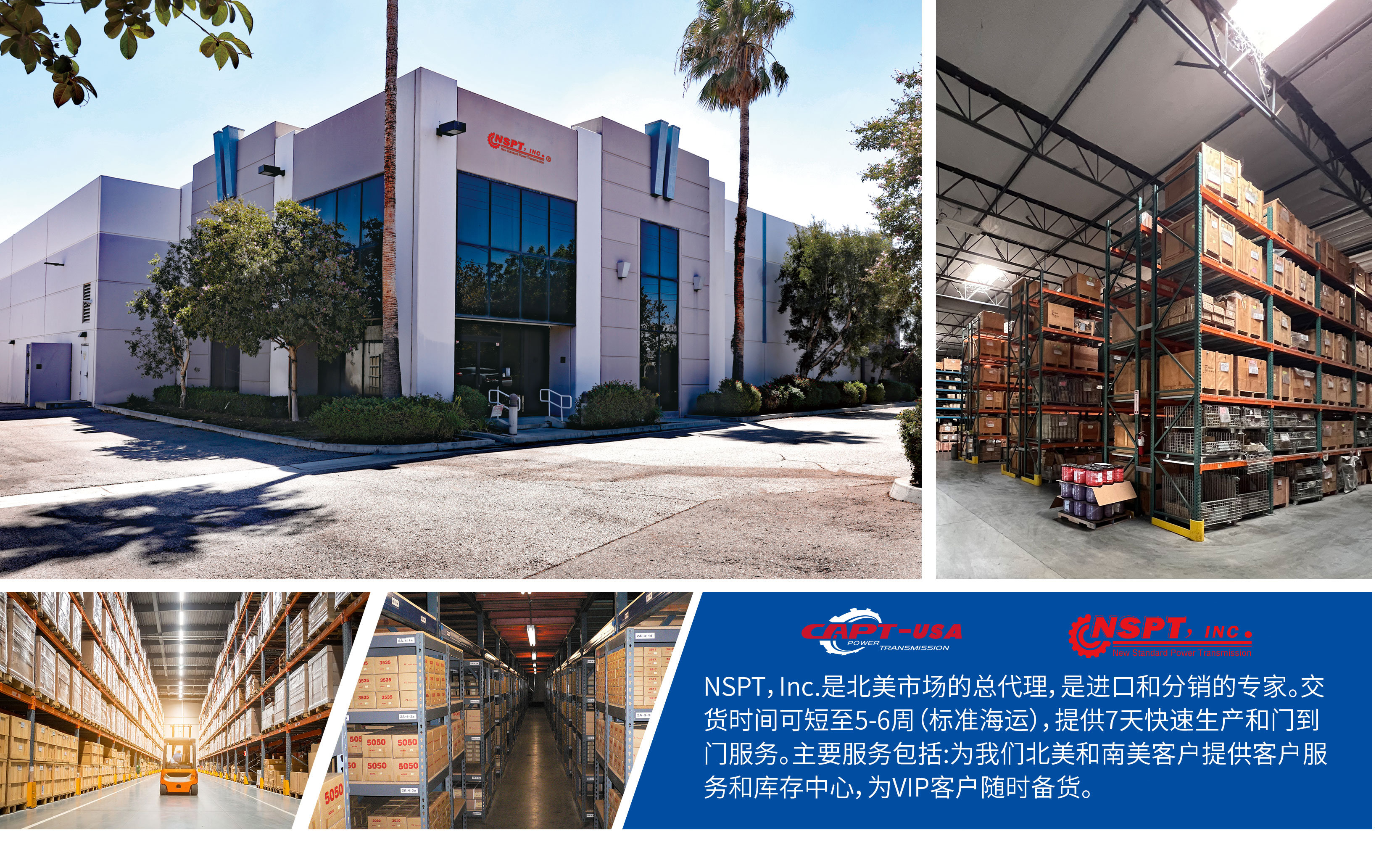NSPT-USA, Inc. 為石家莊凱普特動力傳輸機(jī)械有限責(zé)任公司北美分銷商,成立于2005年,是一個在標(biāo)準(zhǔn)傳動產(chǎn)品行業(yè)成長較快的專業(yè)分銷商,負(fù)責(zé)在美國、加拿大等北美地區(qū)的采購、庫存管理和銷售工作。